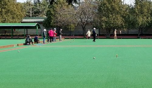 ▲北京地坛公园打门球的老人们。图/杨东儒